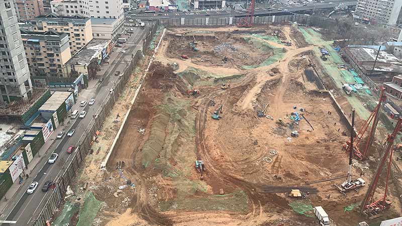 本站訊:由沈陽帝鉑建筑工程有限公司承建的沈陽華潤皇姑置地廣場3期基坑支護及降水工程(即華潤沈陽皇姑萬象匯項目)已于2019年11月07日開始全面施工,預計2020年2月末完成基坑支護工作。本項目位于沈陽市皇姑區,東臨鴨綠江東街,南鄰崇山東路(北一環,地下為地鐵10號線),北至錫山路,基坑周邊環境復雜,基坑安全等級為一級。基坑開挖面積為26000㎡,開挖深度為15.5m,合同額1300萬。本項目基坑支護及降水施工全部為冬季施工,難度非常大,目前已完成大部分支護樁施工,錨索和噴護工程正在有序展開。